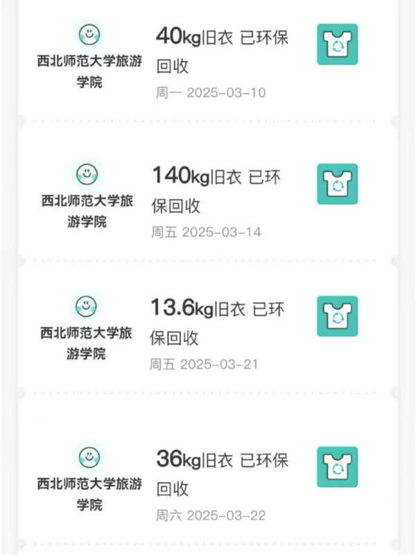 “宿舍里好多旧衣服,都还很新,扔了实在可惜。这个活动既能让这些衣服回收再利用,还能兑换文创产品,太实用了!下次活动我肯定还参加!”一名学生在捐赠时说到。活动得到同学们一致好评与大力支持,通过回收兑换文创,大家不仅得到了实惠,还为宿舍腾出更多空间,真正做到了一举两得。