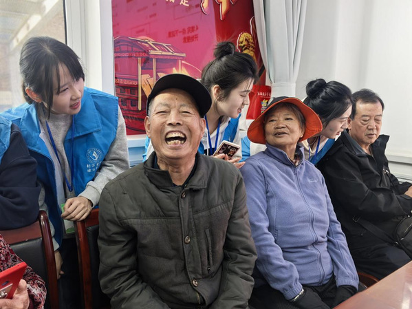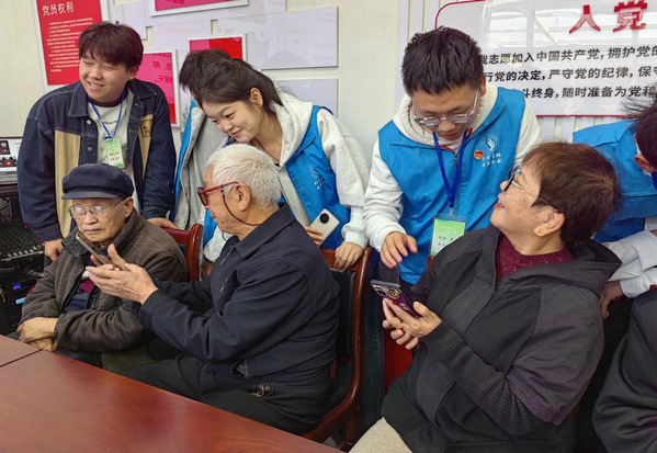 在“一对一帮扶”环节,志愿者们与社区老人结成帮扶对子,面对老人使用智能机的困惑,志愿者们放慢语速,耐心解答。志愿者们还为老人送上了精心准备的礼物,为他们送上重阳节祝福。