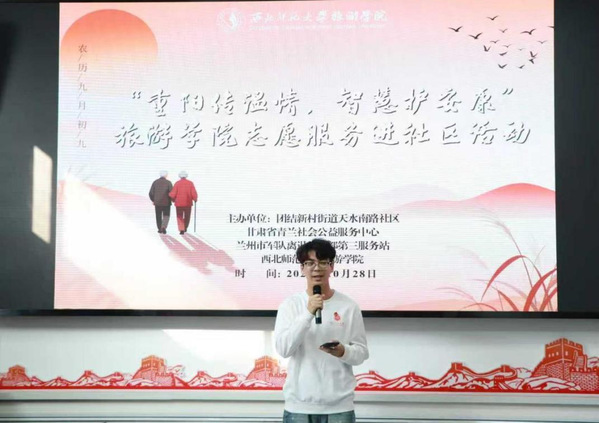 重阳节来临之际,为传承“尊老、敬老、爱老、助老”传统美德,助力社区老年人跨越“数字鸿沟”,10月28日,bat365中文官网登录入口联合城关区团结新村街道天水南路社区新时代文明实践站,开展“重阳传温情,智慧护安康” 志愿服务活动。bat365中文官网登录入口团委书记鲁梦鸽带领40余名学生组成的“蓝马甲”志愿服务队,共同参与活动。志愿者们以行动践行志愿精神,充分展现bat365中文官网登录入口学子的责任担当与人文关怀。